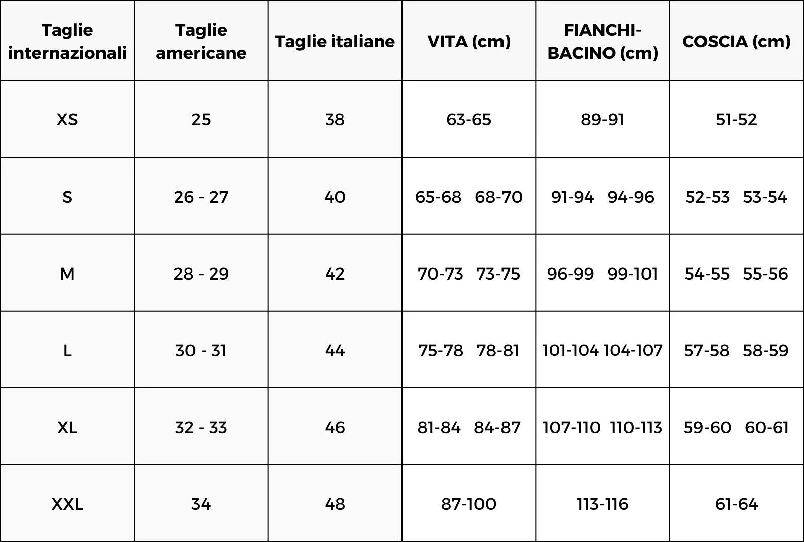 Le taglie riportate sul prodotto si riferiscono alle taglie europee.