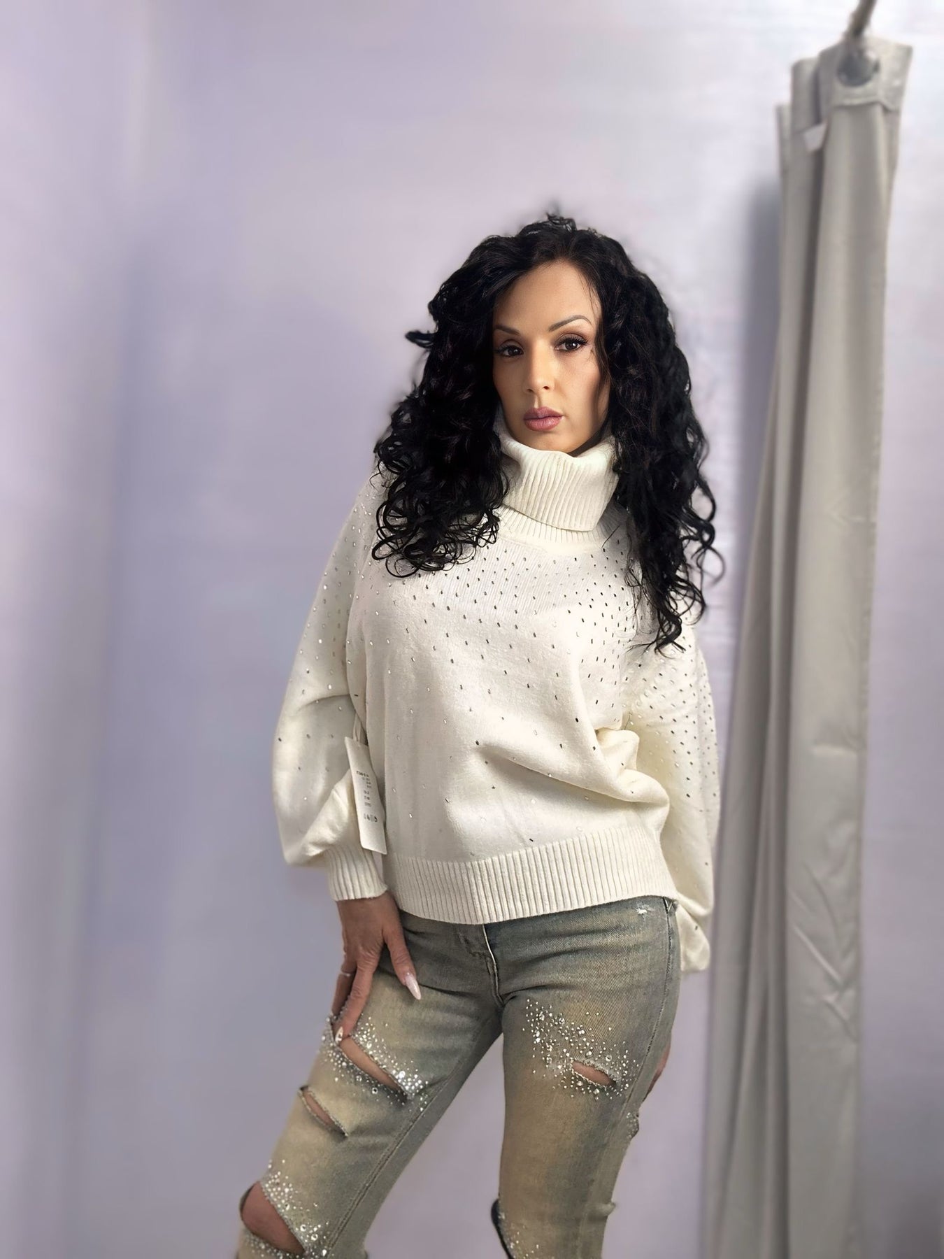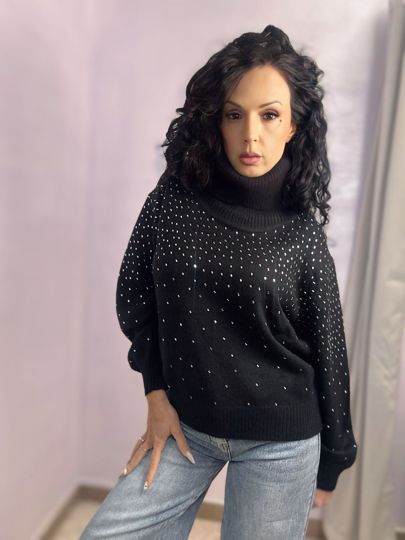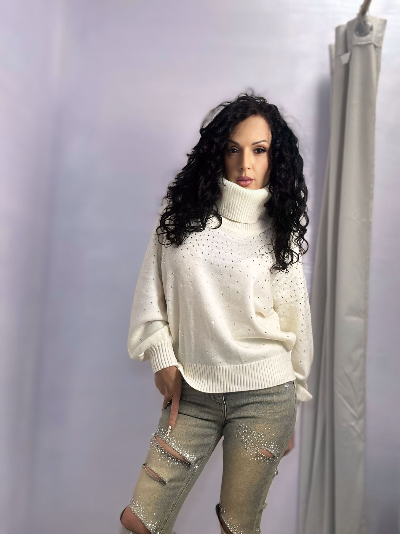 Silvia è il maglione perfetto per chi cerca calore, comfort e un tocco di luce! ❄️✨ Realizzato in tessuto morbido e avvolgente, presenta un collo alto elegante che scalda senza pizzicare sulla pelle.