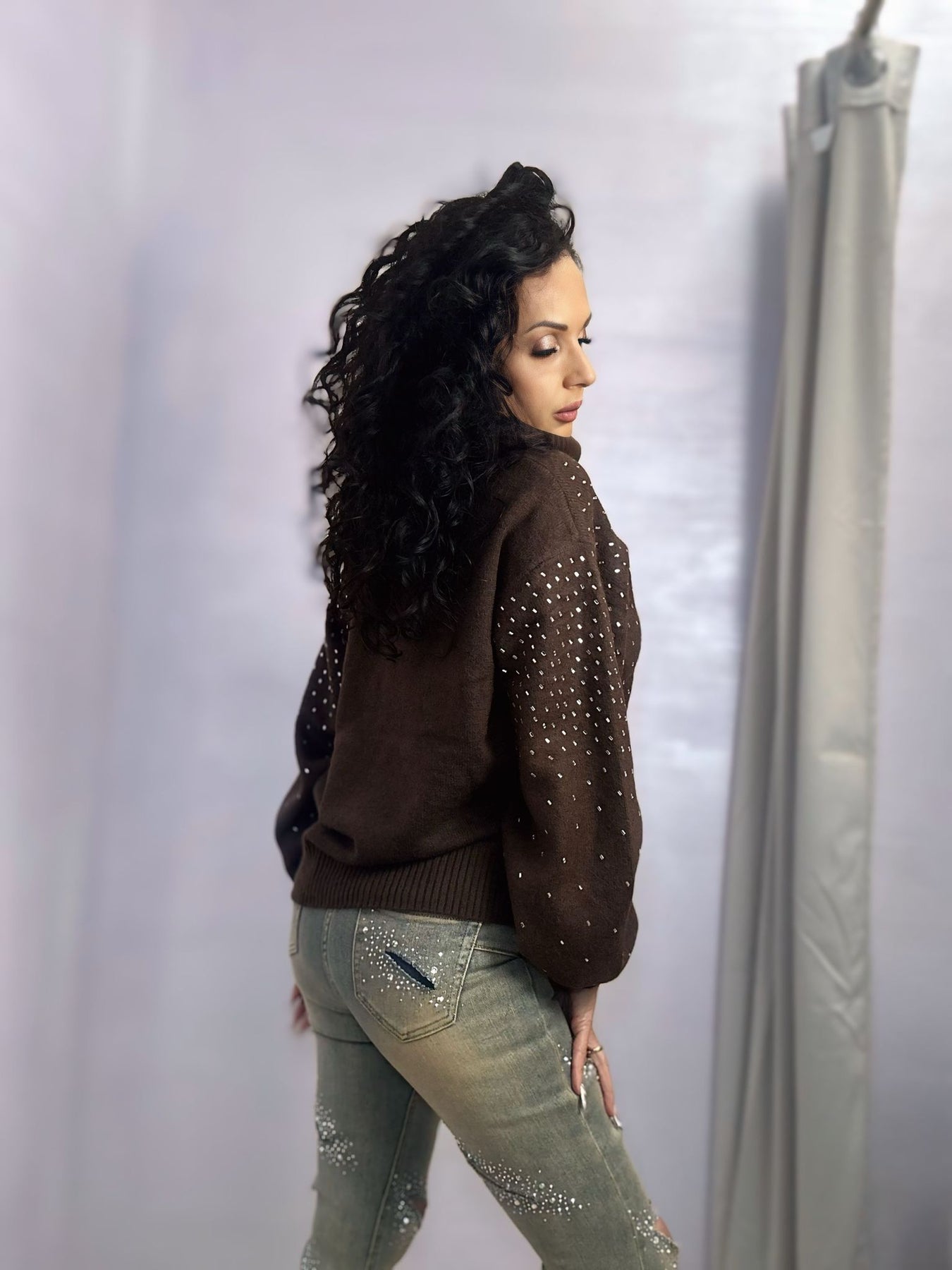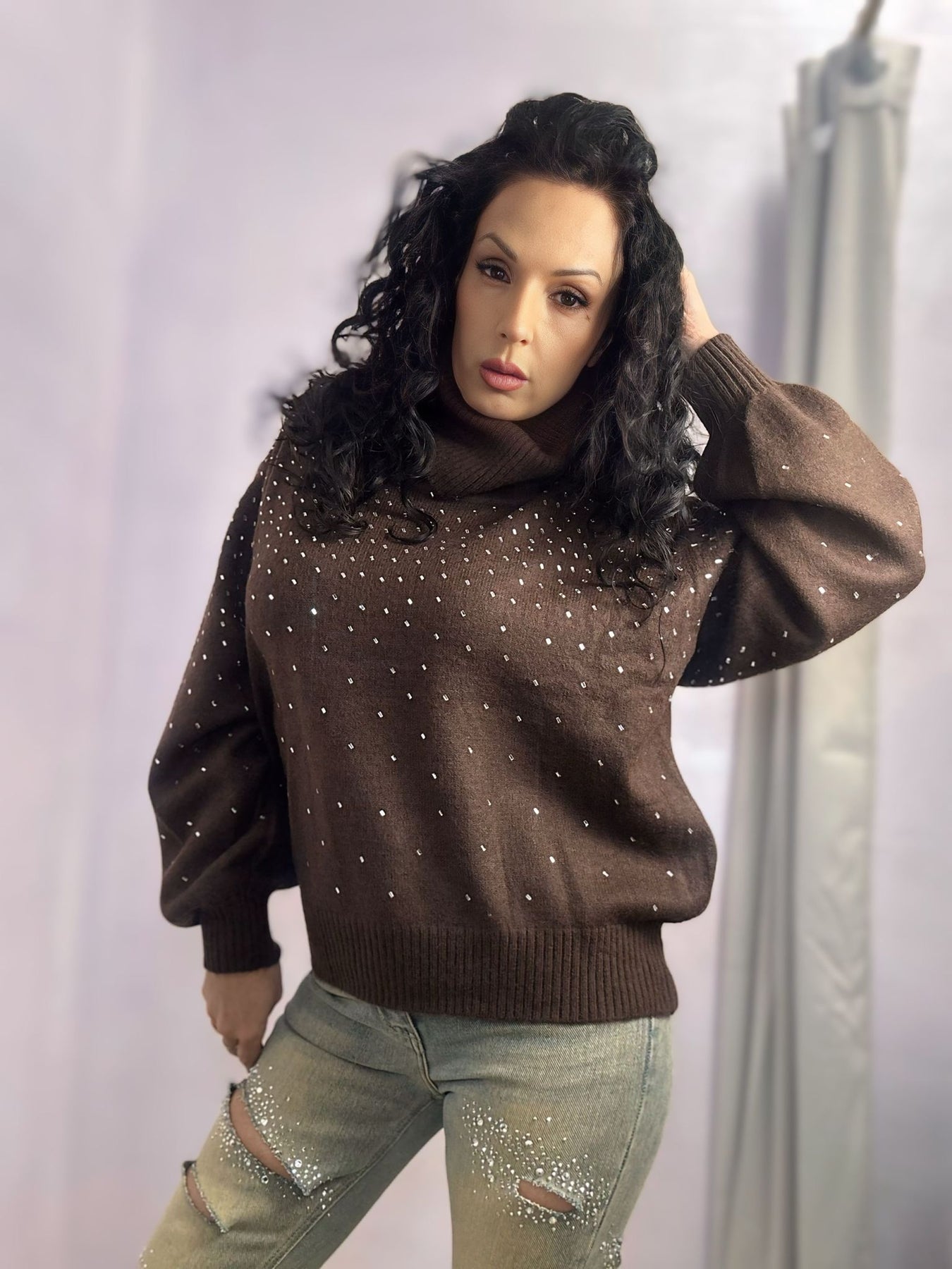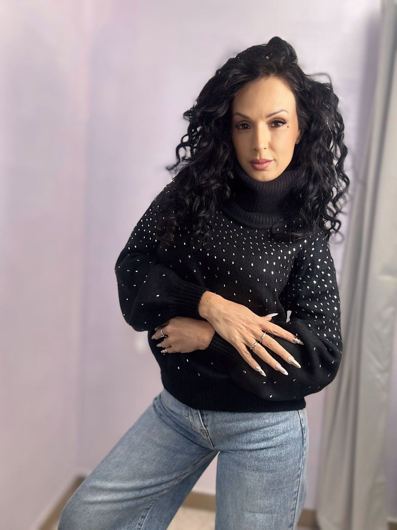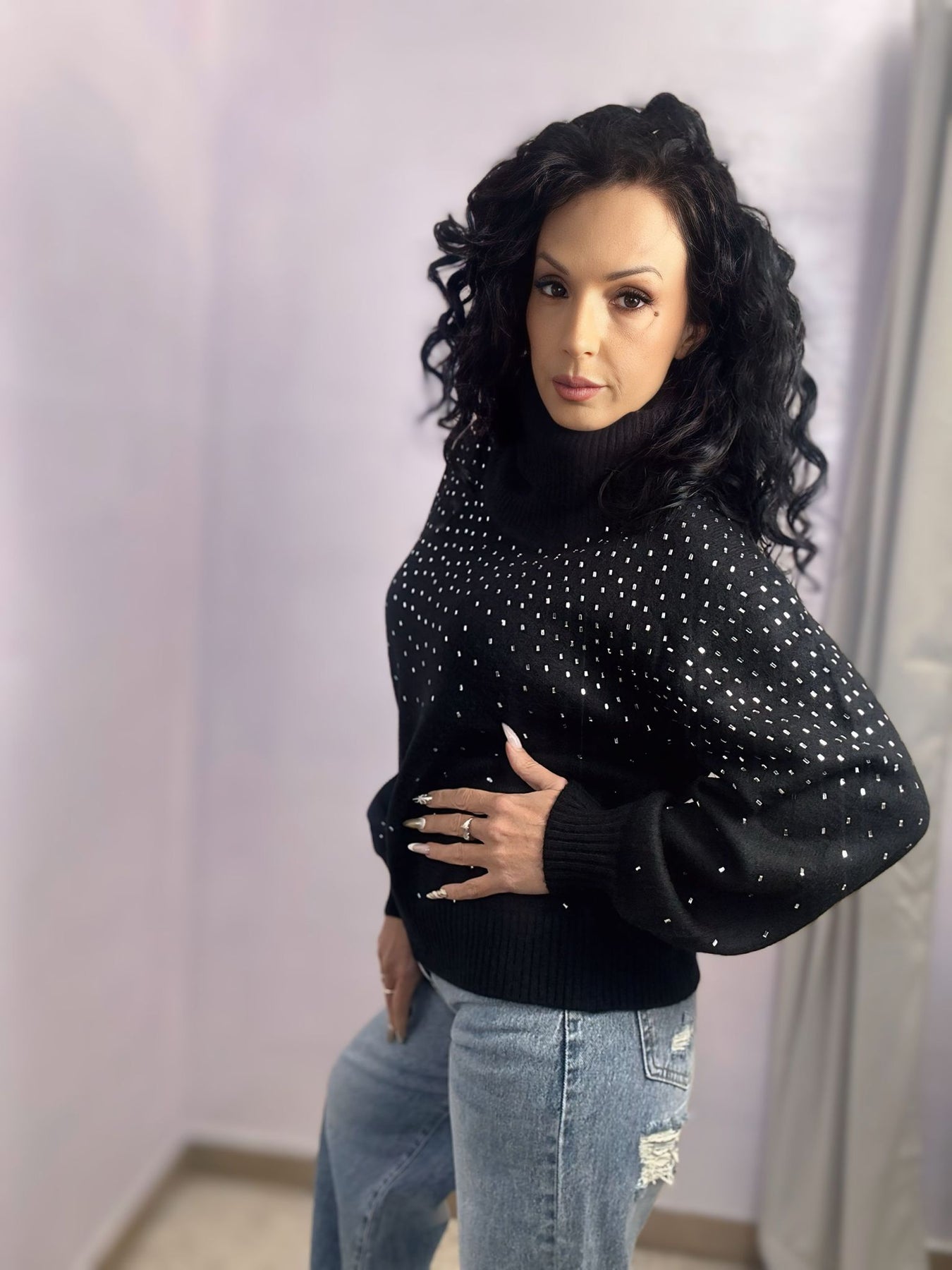 Silvia è il maglione perfetto per chi cerca calore, comfort e un tocco di luce! ❄️✨ Realizzato in tessuto morbido e avvolgente, presenta un collo alto elegante che scalda senza pizzicare sulla pelle.