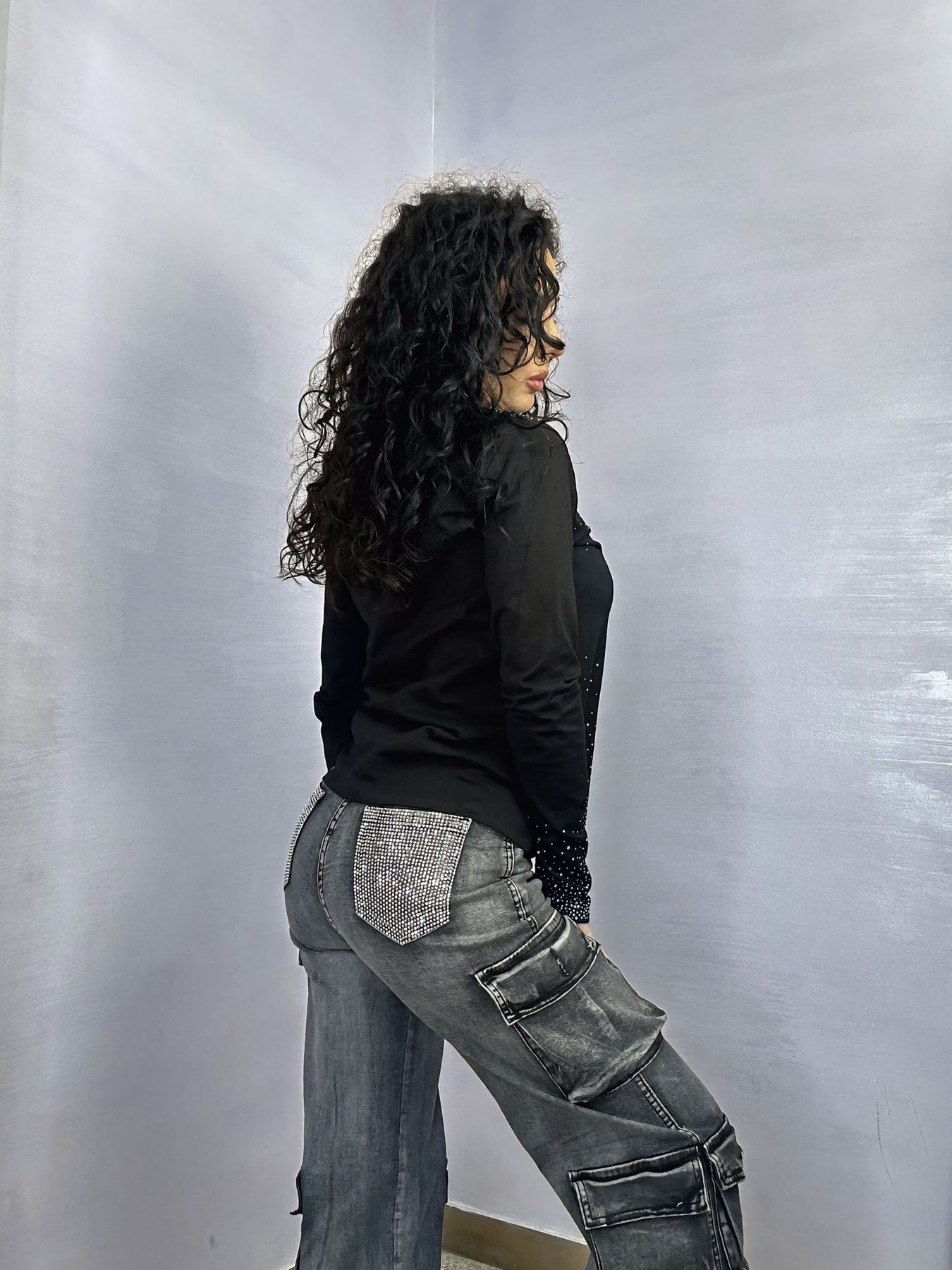 Realizzata in tessuto elasticizzato e super confortevole, è impreziosita da brillantini sulla parte frontale e sulle maniche, per un effetto luce elegante ma mai eccessivo 💎